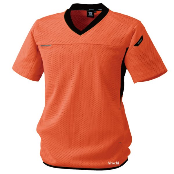 TSデザイン FLASH Vネック ショートスリーブシャツサイズ:Mカラー:オレンジ素材:ポリエステル100%Vネックショートスリーブシャツの、素材はポリエステル100%で、通気性の良いメッシュ素材になっております。また、撥水加工が施されているため、軽い雨や水などを弾き、生地への浸透を防いでくれる、新感覚の素材です。オールシーズン・男女兼用で使える商品なので、体型に合わせてSSサイズから5Lサイズの8サイズでの展開となっており、幅広い体型の方にお選びいただける商品です。カラーは、おしゃれな迷彩や、発色の良いイエロー、落ち着いたオレンジ、クールなブラックの4色からお好みに合わせてお選びいただく事ができます。両肩には反射テープがサンドされ、反射時に光るフラッシュインパクト(反射機能)を備えているので、背中にも背中反射テープが施されている為、、夜間や暗い場所で働く方への安全性確保に。脇には、消臭テープが施されておりますので、汗をかいても嫌な臭いが気になりません。右脇のポケットにはメモ帳や小物を携帯でき、左肩にはマルチスリーブポケット(実用新案 第3174893号)が付いておりますので、いつでもペンの出し入れができ、仕事をこなすうえで、便利な加工や機能が備わっています。