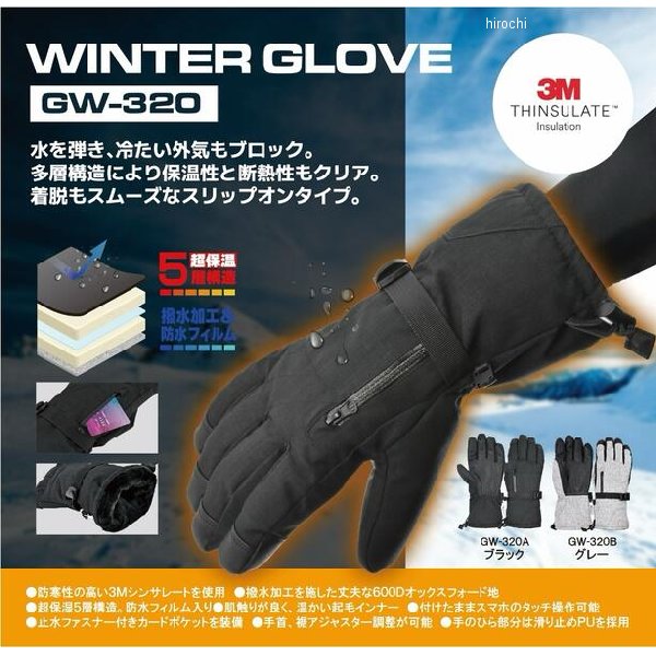リード工業 ウインターグローブ グレー フリーサイズカラー:グレーサイズ:フリーサイズ水を弾き、冷たい外気もブロック。多層構造により保温性と断熱性もクリア。着脱もスムーズなスリップオンタイプのウインターグローブです。製品重量:200g寸法:全長約30cm/中指約8.5cm/掌幅約11cm・防寒製の高い3Mシンサレートを使用・撥水加工を施した丈夫な600Dオックスフォード地・超保湿5層構造。防水フィルム入り・肌触りが良く、温かい起毛インナー・付けたままスマホのタッチ操作可能・止水ファスナー付きカードポケットを装備・手首、裾アジャスター調整が可能・手のひら部分は滑り止めPUを採用