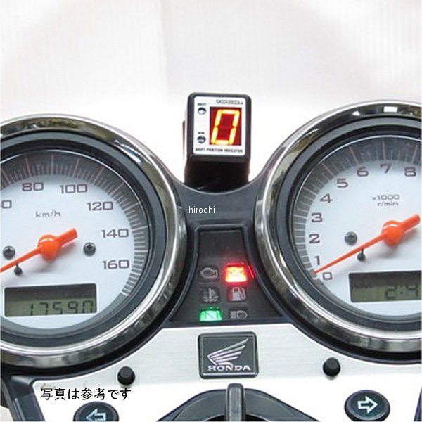 プロテック PROTEC シフトポジションインジケーター09年-12年 ホンダ VTR250型式:MC33本体サイズ:25.5mm(W)×30.5mm(H)×15.5mm(D)( ※突起部除く)定格電圧:DC12V表示パネル:LED(自動調光機能ディマーセンサー搭載)シフトアップインジケーター搭載※任意で回転数を設定できるので、馴し運転からオーバーレブ防止まで、設定値より回転が上がると青色LEDが点灯します。※登録のやり直しは何回でも可能です。【セット内容】・SPI-110 C1本体 ×1・車種専用ハーネス ×1・各種両面テープ・取扱説明書・保証書※付属品はキットにより異なります。【特徴】メーター周りに取付ても邪魔にならないコンパクト設計。車種専用ハーネスと組み合わせる事で簡単に装着ができます。シフトポジションインジケーター(SPIシリーズ)は、ギヤが何速に入っているかをデジタル表示で表示する画期的なメーターインジケーターです。速度(スピード)とエンジン回転の2つのパルス信号からギヤポジションを電算してインジケーターにデジタル数字で表示します。ディマーセンサー(自動調光機能)を搭載しLEDの明るさを、昼間は明るめ・夜間は暗めに自動調節しデジタル数字の視認性を高めます。ミニバイクから大型バイクまで、FUELインジェクションの電気式メーターバイクはもちろん、機械式メーター車輌、タコメーターが無い車輌など、様々なバイクに取付け可能です。※スピード、タコメーターが電気式でない場合は別売りのPG-110、 PG-220パルスジェネレーターが必要です。※一部のキャブレター車輌で点火信号のノイズが多い場合や波形に乱れが多い場合は対応致しません。※ニュートラルランプの無いレーサーには取付けできません。※2013年9月より化粧パネルのカラーがシルバーからブラックに変更になっています。