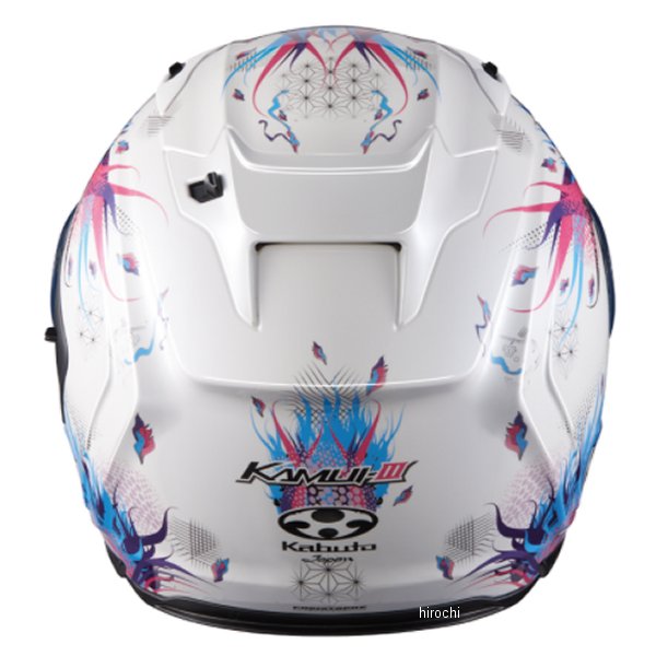 オージーケーカブト OGK KABUTO フルフェイスヘルメット KAMUI-3 レイアサイズ:XS(54cm-55cm)カラー:ホワイト神秘的な世界観を演出するグラフィックパターンと繊細な和柄をあしらったデザイン。※2021年夏発売予定・T.P.S.(高性能サーモプラスチック帽体)優れた耐衝撃性の高性能樹脂原料を使用した熱可塑性プラスチック帽体です。・ウェイクスタビライザー(PAT.)走行中に発生する帽体付近の気流をコントロールし、ライダーへの負荷を軽減するKabutoオリジナルの機能です。(特許No.4311691)・チンベンチレーション前方からの空気をヘルメット内部に取り入れるシャッター機能付きベンチレーション。・CF-1 クイックチェンジシールドシステムシールドメカのレバーを引くだけでシールドが外せるスピーディなシールド交換システム。・インナーサンシェードヘルメット内部(シールドの内側)に装備され、シーンに合わせて開閉できるサンシェード。・内装フル脱着可能内装の全てが取り外せて、手洗いもしくは洗濯機で洗えます。(洗濯機の場合は要・洗濯ネット)・マイクロラチェットバックルワンタッチで脱着が出来る、あごひもの保持装置。細かなラチェットにより微調整も簡単です。・2-Shell11つの帽体を採用することにより、細やかなフィッティングを実現。・ヘッドベンチレーション前方からの空気をヘルメット内部に取り入れるシャッター機能付きベンチレーション。・リアベンチレーションヘルメット内部にこもった熱気を外部へ排出するシャッター機能付きベンチレーション。・帝人株式会社 熱線遮蔽素材使用「UV & IRカットシールド」目などに有害なUV(紫外線)とヘルメット内部温度上昇の要因となるIR(赤外線)をカットするシールドです。・PinlockR Original Insert Lens[ワイドタイプ]装着可能通常より上下左右がワイドになったPinlockR Original Insert Lens(別売)取付専用ピンが装着されています。・眼鏡対応チークパッド眼鏡やサングラスをスムーズにかけることができるチークパッドを採用しています。・ウィンドシャッター走行中に発生するあご付近からの風の巻き込みを軽減。季節や用途に応じてお好みで脱着可能。・クールマックス汗を素早く蒸散し、いつもサラッと快適。「クールマックスR」は、体から発汗すると水分を外へ排出し、空気が外部から入り込んで、冷却・乾燥させる効果があり、体表温度を下げ、優れた水分調整機能を発揮します。「クールマックスR」は、自然風合いを持ち、ソフトで軽量、通気性にも優れています。※「COOLMAXR」および「クールマックスR」はインビスタ社の登録商標です。【規格】JIS【届出事業者】株式会社オージーケーカブト【検査機関】一般財団法人製品安全協会