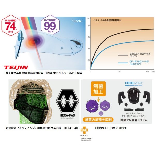オージーケーカブト OGK KABUTO フルフェイスヘルメット SHUMA FROZEサイズ:Mカラー:ブラックブルー標準シールド:CF-1W UICシールド(UICクリア)※Pinlock(R) Original Insert Lensは別売同梱品:ウィンドシャッターNo.7【仕様説明】Kabutoより新型フルフェイスヘルメット「SHUMA(SHUMA)」が登場。走行した瞬間からヘルメット内部にエアの導入を感じることができる新設計のクーリングシステム。風が通り抜ける涼しさを体感できる新感覚の内装。ヘルメット内部を効果的に冷却し高い快適性を実現します。【特徴】・ウルトラクールシステム走行した瞬間から風を感じることができる、新設計のクーリングシステムです。低速域から風を感じる事ができるインパクトのある涼しさを実現。新設計チンベンチレーションは、エア導入を二手に分け、上方向へはシールドの曇りを軽減し、正面方向へは口元へダイレクトにエアを取り入れ、今までにない涼しさを実現。・風が通り抜ける新感覚のフィッティング内装(HEXA-PAD)生地の大部分をホットプレス加工により厚みに強弱をつけることで、縫い目が少ない新感覚のシームレスなフィッティングで、風が通り抜ける涼しさを体感いただけます。・制菌加工内装 インナーパッド表地に、繊維上の細菌の増殖を抑制する、DEOFACTOR(R)の「制菌加工」を採用。制菌作用により、衣類や繊維製品に付着する有害物質を分解します。・赤外線カット素材使用「CF-1W UICシールド(UICクリア)」を標準装備紫外線(UV)99%カットに加え、赤外線(IR)を74%カットする「CF-1W UICシールド(UICクリア)」を標準装備。シールドを開閉するシステムは、シールドメカのレバーを引くだけで簡単に外せるスピーディなシールド交換システム"CF-1シールドシステム"を採用。・CF-1W UICシールド(UICクリア)太陽光の赤外線(IR)で発生する日射熱による温度上昇を抑制する熱線遮蔽性能があり、ヘルメット用シールドでは最も重要な"クリアな視認性"を保ったまま、ヘルメット内部への熱伝導を低減させます。・インカム専用取付スペースを設置「グループツーリングやスマートフォンの普及によるインカムユーザー増加に伴い、インカムやカメラ本体の取付ステーが収まる専用取付スペースを予め左右に設定。一部特殊な形状は取付不可。・スタイリッシュなコンパクトデザイン効果的なパーツレイアウトとエッジを効かせた大胆なシェル造形で、スタイリッシュでコンパクトなデザインを実現。・眼鏡対応チークパッドさらに使いやすくなった"眼鏡対応チークパッド"は、従来品と比べ、メガネやサングラスの装着をよりスムーズにおこなうことが可能です。・Kabuto独自の特許システム「ウェイクスタビライザー PAT.」走行中発生する帽体付近の気流をコントロールし、負荷を軽減するKabuto独自の特許システム「ウェイクスタビライザー PAT.(PAT.No.4311691)」を搭載し、走行時のブレを抑え、後方確認時の首振りもスムーズになります。・曇りを抑えるワイドタイプのピンロックシート&大型ブレスガードワイドタイプの「100%MAX VISIONピンロックシート(別売)」を装着することで、シールドの曇りを防止。ブレスガードは、シールド裏面への吹き出し面積を拡大した大型の「ブレスガードNo.9」を採用。シールドの曇り除去に貢献します。・ウィンドシャッターNo.7風の巻き込みを軽減する大型のウィンドシャッター。走行中に発生するあご付近からの風の巻き込みを軽減します。・マイクロラチェットバックルワンタッチで脱着、微調整が可能なマイクロラチェットバックル採用。・サイズ展開帽体サイズは2シェル5サイズ展開。帽体サイズを2サイズに分けることで、細やかなフィッティングと軽量・コンパクト化を実現しました。【規格】JIS【届出事業者】株式会社オージーケーカブト【検査機関】一般財団法人製品安全協会