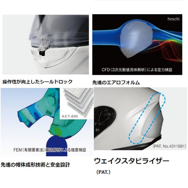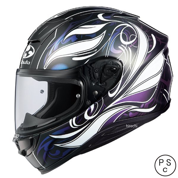 オージーケーカブト OGK KABUTO フルフェイスヘルメット エアロブレード 6 エルフィサイズ:S(55-56㎝)カラー:ダークブラックホワイトパープル【標準装備品】標準装着シールド:DAF-1 UICシールド(UICクリア)ブレスガードNo.12同梱品:ウィンドシャッターNo.3【仕様説明】UV(紫外線)とIR(赤外線)をカットする、帝人株式会社の高機能ポリカーボネートをシールド素材として用いた『UV&IRカットシールド』を採用。太陽光の赤外線(IR)で発生する日射熱による温度上昇を抑制する熱線遮蔽性能があり、ヘルメット用シールドでは最も重要な「クリアな視認性」を保ったまま、ヘルメット内部への熱伝導を低減させます。・軽量コンパクト設計ライダーに大きなメリットを与える「軽さ」。ヘルメットの軽量化は、走行風や加減速Gなどでライダーの首や肩にかかる負担、ストレスの低減につながります。・操作性が向上したシールドロックボタン形状の変更によってシールドロックの操作性を向上。よりスムーズなシールドの開閉を実現しました。・先進のエアロフォルムCFDを駆使し、極限まで絞り込んだ前面投影面積により、ロングツーリング時などでのライダーにかかるストレスを軽減します。・先進の帽体成形技術と安全設計耐貫通性と衝撃吸収性を兼ね備えた高強度複合素材帽体(A.C.T.-EVO)とFEM(有限要素法)構造解析を導入し各部の強度を最適化。・ウェイクスタビライザー(PAT.)帽体付近の気流をコントロールし、負荷を軽減するKabutoの特許システム。・二軸ラチェットシールドシステム2軸構成の「DAF-Rラチェット」、素早い交換が可能なDAF-1シールドと一体式トリムラバーの採用で密閉性と静粛性を向上。・フレッシュエアコントロールシェル内部のエアルートへとつながる大型エアインレットは、シールド内面やメガネの曇りを抑え息苦しさを低減します。・スピーカー専用スペース脱着式イヤーカップを採用し、インカムスピーカー用スペースを予め左右に設定。※一部特殊な形状は取付不可。・眼鏡対応チークパッド眼鏡やサングラスをスムーズにかけることができるチークパッド形状を採用。※メガネの形状や、顔の形により個人差があります。・脱着スムーズフォルム広がりやすいアンダートリム形状で、高いフィット感でありながらストレスを感じさせずに脱着が可能です。・DAF PinlockR Original Insert Lensワイドタイプの100% MAX VISIONピンロックシート(別売)装着可能。・D-リングレースモデルなど厳しい使用環境に適したスタンダードタイプです。【規格】JIS【届出事業者】株式会社オージーケーカブト【検査機関】一般財団法人製品安全協会