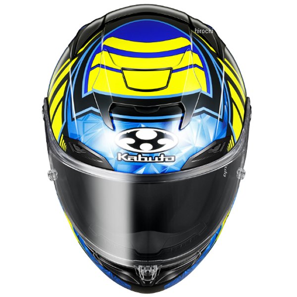 オージーケーカブト OGK KABUTO フルフェイスヘルメット F-17 VELLIOサイズ:M(57cm-58cm)カラー:ブルーイエロー規格:JIS、MFJ公認(MFJが主催する競技での使用を認めたことを証明する、MFJ公認商品です。)【仕様説明】レーシングの迫力を引き立てる、ダイナミックで先進的なグラフィックデザイン。最先端のエアロフォルムCFD(3次元数値流体解析)を駆使して開発されたKabuto独自の空力デバイス「ウェイクスタビライザー(PAT.NO.4311691)」と、極限まで絞り込んだ前面投影面積を採用した帽体により、直進時だけではなく横風や後方確認時の空気抵抗を低減。さらに走行風で発生するヘルメットが浮き上がろうとする力を抑制し、優れた空力性能に大きく寄与するデバイス「クレストスポイラー(PAT.P)」の新採用など、最先端のエアロフォルムは、あらゆる速度域での高い集中力維持に大きく貢献します。クレストスポイラー(PAT.P.)ヘルメット上部の気流をあえて乱すことにより浮き上がろうとする力を抑え、F-17本来の優れた空力性能にも寄与するデバイスです。幅広い角度で効果が発揮される弓状の形状を採用し、もっとも顕著に効果が確認できたデバイスサイズとしています。ウェイクスタビライザー(PAT.)走行中発生する帽体付近の気流をコントロールし、負荷を軽減するKabutoの特許システム。長年にわたる研究・風洞実験を重ね生まれました。気流をコントロールし、揚力や空気抵抗を低減。高速走行時にヘルメットの安定感を高めます。最先端の帽体成形技術と安全設計優れた耐貫通性と衝撃吸収性を兼ね備えた高強度複合素材帽体(A.C.T.-2)を採用するとともに、FEM(有限要素法)構造解析を導入し各部の強度を最適化。安全性と首への負担を低減するその驚異的な軽さは、あらゆる状況においてライダーの負担を軽減。新帽体構造「A.C.T.-2」定評あるA.C.T.構造をさらに進化させた「A.C.T.-2」構造を採用。厳しい耐貫通性能が求められるMFJの安全基準を高次元でクリアしながら更にチンガード部分にも高強度有機繊維を配置し、帽体強度を更に向上。サイドベンチレーションコーナリング姿勢でも効率よく風を捉え、直進時の姿勢と同等のエア導入を目的としたサイドベンチレーションを採用。開口面積・開口幅ともに大幅拡大したチンベンチレーションと相まって、常にヘルメット内部へフレッシュなエアを取り込みます。センターロック/二軸ラチェットシールドシステム2軸構成の新型「DAF-Rラチェット」、素早い交換が可能なDAF-1Rシールド、新形状の一体式トリムラバーの採用により密閉性と静粛性を向上。また大型レバーを備えたセンターロック式で、グローブを装着したままでも確実に開閉可能です。トップエアロベンチレーション整流効果と同時に、ヘルメット内部にこもった熱気を放出するKabuto独自のシステム。シェル内部を通過してリアベンチレーションフィンに設けられたエア排出路へとつながるエアルートを確保し、優れた換気性能と軽量化を両立。※リアベンチレーションに開閉機能はありません。過酷な状況下で徹底的に検証された、「着脱のしやすさ」と「極上のかぶり心地」独自の空間認知技術採用など、設計思想から見直した内装は、サポートライダーの多くが「従来品よりもかぶり心地が良くなった」と回答。「点のフィット感から包み込むフィット感」への転換が極上のかぶり心地を実現。「制菌加工」内装 ※一部に使用インナーパッド表地に、繊維上の細菌の増殖を抑制する、DEOFACTORの「制菌加工」を採用。DEOFACTORは制菌作用により、衣類や繊維製品に付着する有害物質を分解します。※DEOFACTORはKOKORO CAREが開発した特殊加工技術です。エマージェンシーシステム(PAT.P)※緊急時以外使用不可アクシデント発生時に、救助者が簡単かつ素早く安全にヘルメットを脱がさなければならない状況でも、内装ウレタン材を引き抜く方式により頬に当たる生地はそのまま残り、スムーズでライダーへの負担も少ないKabutoの独自構造です。※サイズはあくまで目安です。製品の設計により同じサイズ表示でも装着感が異なる場合があります。