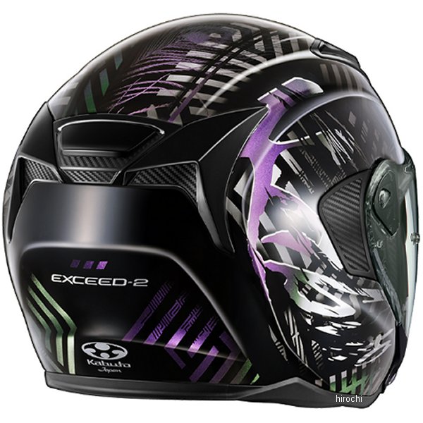 オージーケーカブト OGK KABUTO オープンフェイスヘルメット EXCEED-2 PLUMEサイズ:XL(61cm-62cm)カラー:ブラックパープル規格:JIS【仕様説明】見る角度で色が変化するスペシャルカラーと、孔雀をモチーフにした神秘的なグラフィックは誰もを魅了する。帝人株式会社 熱線遮蔽素材使用「UV&IRカットシールド」採用UV(紫外線)とIR(赤外線)をカットする、帝人株式会社の高機能ポリカーボネートをシールド素材として用いたUV&IRカットシールドを採用。太陽光の赤外線(IR)で発生する日射熱による温度上昇を抑制する熱線遮蔽性能があり、ヘルメット用シールドでは最も重要な「クリアな視認性」を保ったまま、ヘルメット内部への熱伝導を低減させます。風の巻き込みを軽減する新設計エアロシールドシールド形状の変更により、走行風を効率よく左右に分散。風の巻き込みをより低減させます。心地よく包み込むような新フィット感内装スムーズな着脱と首元までソフトに包み込まれる心地よいフィット感を両立しています。スピーカーホールを拡大し装着性を向上インカムやカメラを考慮した専用取付スペースを予め左右に設定。ケーブルルートも同時に設置しており、コードもスマートに配線できます。※一部特殊な形状は取付不可広いエリアをカバーするインナーサンシェード照り返しや日差しが強いシーンで威力を発揮する、専用設計の大型インナーサンシェードを標準装備。さらに使いやすくなった、眼鏡対応チークパッド新たな縫製パターンを採用したチークパッド形状は、メガネやサングラスをよりスムーズに装着可能に。※メガネの形状や、顔の形により個人差があります。FEM構造解析の活用で、安全性と軽量化を両立FEM(有限要素法)解析を活用し無駄な贅肉部分を削減したことで安全性を確保しながらも軽量化。チーク部衝撃吸収ライナーチークパッド内側にも衝撃吸収ライナーを配置し、ワンクラス上の安全性を実現。操作しやすいベンチレーション大型シャッター採用で操作がしやすいヘッド&リアベンチレーションは、より多くの走行風をヘルメット内部へ導入。ウェイクスタビライザー(PAT.)帽体付近の気流をコントロールし、負荷を軽減するKabutoの特許システム。COOLMAX&内装フル脱着システム肌触りのよいCOOLMAX生地を一部に使用。内装は全て取り外して洗うことも可能。SAJシールドシステムPAT. (PAT.No.4839373)素早いシールド交換を可能にした、カバーレス・シールド交換システム。「制菌加工」内装 DEOFACTORインナーパッド表地に繊維上の細菌の増殖を抑制するDEOFACTORの「制菌加工」を採用。ダブルアクションタイプ マイクロラチェットバックル確実な作動と、複数の噛み合い爪で微調整を可能にしたKabuto独自のマイクロラチェットバックル。※サイズはあくまで目安です。製品の設計により同じサイズ表示でも装着感が異なる場合があります。