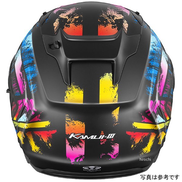オージーケーカブト OGK KABUTO フルフェイスヘルメット KAMUI-3 PRISMAサイズ:S(55cm-56cm)カラー:フラットブラックシルバー規格:JIS【仕様説明】光のプリズムが生み出す幻想的な煌めきが、走りに躍動を与える神秘的なグラフィックモデル。帝人株式会社 熱線遮蔽素材使用「UV&IRカットシールド」採用UV(紫外線)とIR(赤外線)をカットする、帝人株式会社の高機能ポリカーボネートをシールド素材として用いたUV&IRカットシールドを採用。太陽光の赤外線(IR)で発生する日射熱による温度上昇を抑制する熱線遮蔽性能があり、ヘルメット用シールドでは最も重要な「クリアな視認性」を保ったまま、ヘルメット内部への熱伝導を低減させます。※白熱灯(300W)を照射してヘルメット内の温度を社内にて測定インカム取付を考慮した、専用取付スペースを設置インカムやカメラを考慮した専用取付スペースを予め左右に設定。ケーブルルートも同時に設置しており、スピーカーなどからのコードもスマートな配線が可能となりました。※一部特殊な形状は取付不可心地よく包み込むような新フィット感内装スムーズな着脱と首元までソフトに包み込まれる心地よいフィット感を両立しています。広いエリアをカバーする新設計インナーサンシェード照り返しや日差しが強いシーンで威力を発揮する、専用設計の大型インナーサンシェードを標準装備。操作しやすいベンチレーション操作しやすい形状を採用し計4カ所のベンチレーションより効率良く冷気を導入、ヘルメット内部のエアを排出。ウェイクスタビライザー PAT.No.4311691帽体付近の気流をコントロールし、負荷を軽減するKabutoの特許システム。ブレスガードNo.9シールド裏面への吹き出し面積を拡大した新設計ブレスガードを採用。シールドの曇り除去に貢献します。ダブルアクションタイプ マイクロラチェットバックル確実な作動と、複数の噛み合い爪で微調整を可能にしたKabuto独自のマイクロラチェットバックル。※サイズはあくまで目安です。製品の設計により同じサイズ表示でも装着感が異なる場合があります。