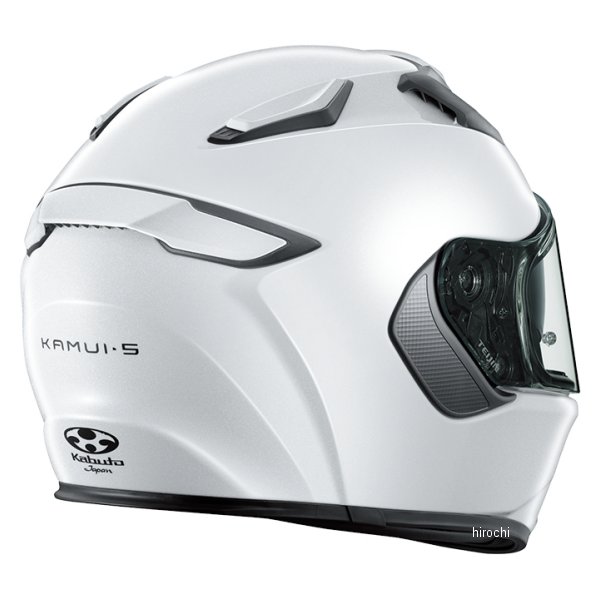 オージーケーカブト OGK KABUTO フルフェイスヘルメット KAMUI 5 パールホワイト XL(61-62cm)サイズサイズ:XL(61-62cm)カラー:パールホワイト規 格:JIS・赤外線(IR)カット素材を使用した「CF-2 UICシールド(UICクリア)」を標準装備。・ベンチレーションの配置および形状を解析・最適化し優れた通気性能を実現。・スムーズな着脱と首元までソフトに包み込まれる肌さわりのよい内装により、快適なフィット感とストレスフリーの脱着を両立。・スピーカーホールを拡大し、インカムなどの装着性を向上。・広いエリアをカバーする専用設計の大型インナーサンシェードを標準装備。・眼鏡やサングラスをスムーズにかけることができるチークパッド形状を採用。・シールド曇り除去と口元送風の上下2段階で調整できるチンベンチレーションにより効果的なエアフローを実現。・新型シールドラチェット機構の採用により、安定した作動性と高い密閉性能を両立。・気流をコントロールし、負荷を軽減するKabuto独自の特許システムウェイクスタビライザー(PAT.No.4311691)を搭載。・2シェル5サイズ展開により、細やかなフィッティングと軽量・コンパクト化を実現。・シールド上端までをカバーする100% MAX VISIONピンロックシート<別売>が装着可能。・肌触りのよいCOOLMAX®生地を一部に使用。・インナーパッド表地に繊維上の細菌の増殖を抑制するDEOFACTOR®の「制菌加工」を一部に採用。・確実な脱着作動と、微調整を可能にしたKabuto独自のマイクロラチェットバックルを装備。
