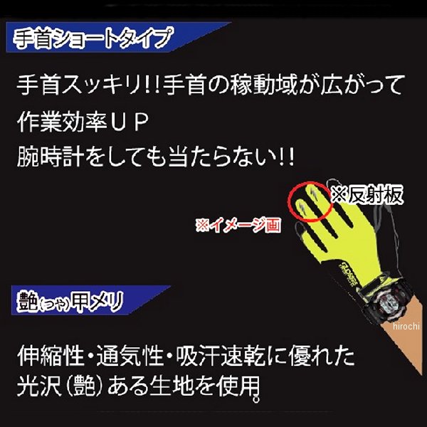 TNK工業 ショートグロス Short GLOSS グローブサイズ:Mカラー:ロイヤルブルー【素材】手の平部分:黒マイクロファイバー手の甲部分:ポリエステルカモフラ柄部分:カラーシリコンゴム【特徴】軽量で耐久性・柔軟性に優れた黒マイクロファイバーに、耐久性・グリップ力の高いカモフラ柄のカラーシリコンゴム仕様。凸凹形状で接地面を増やしたことでさらにグリップ力UP。甲部分は伸縮性・通気性・吸汗速乾に優れた光沢(艶)のある生地を使用。手首がすっきりの、ショートタイプだから手首可動域が広がり作業効率UPまた腕時計をしても当たらない。指先には安心安全の反射板を使用。ピーチオレンジカラーは子供・女性向けのS/SSサイズも用意しました。