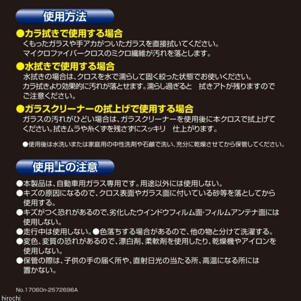 カーメイト エクスクリア 窓拭きクロスサイズ:300×300mm超微細&多角形状のミクロ繊維が汚れを除去。拭きムラや糸くずを残さずスッキリ仕上がります。
