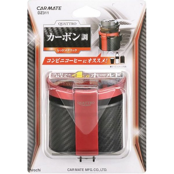 カーメイト ドリンクホルダー クワトロカラー:カーボン調レッドメタリック製品サイズ:H80×W84×D95(mm)4点支持でドリンクをホールド。コンビニコーヒーが傾かない。スポッと収まるホールド感。