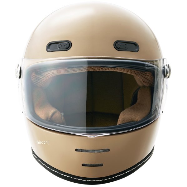マルシン工業 Marushin フルフェイスヘルメット MNF1 エンドミルサイズ:M(57-58cm)カラー:キャラメルベージュ品番:MNF1全排気量対応SG規格/PSCマーク取得帽体素材:ABS帽体重量:1370g±50g【仕様説明】シンプルレトロデザインが魅力の新世代フルフェイスヘルメット。レトロな世界観を表現したネオレトロフルフェイス。ノスタルジック感のあるディティールを再現しつつ、最新技術で製造し安全性を両立しました。どんなバイクにも似合うシンプルなデザイン。リブにはマシンステッチを入れ高級感を演出。ベンチレーション形状も当時のテイストを再現、丸く静音性の高いフォルム、軽量で疲れにくく、高速走行でもブレないフィット感、無段階調整式シールド、前後4ヶ所のベンチレーションなど最新機能を搭載しています。肌触りの良い起毛生地と合皮の二つの素材を組み合わせたハイブリット内装は着脱可能でお手入れも簡単。内装色はダークブランを採用し細部にまでこだわったヘルメットです。【機能】・あご紐Dリング仕様・インカム対応 ※形状次第で合わない場合もあります。・内装着脱洗濯可(手洗い推奨)・メガネ対応【マークの種類】PSC/SG【届け出事業者名】株式会社マルシン工業【登録検査機関名称】一般財団法人製品安全協会