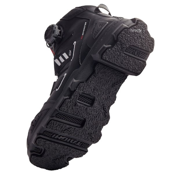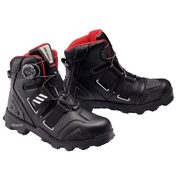 RSタイチ DRYMASTER コンバットシューズサイズ:23.0cmカラー:ブラック/ホワイトアドベンチャーコンセプトのデザインに基づき、悪路でのグリップに優れたTAICHIオリジナル成型ソールを採用したシューズ。アッパー内部にはTAICHIオリジナルの防水・透湿素材"ドライマスター"を使用し、悪天候にも快適な履き心地を実現します。アッパーのカラーに合わせてソールにも3タイプのカラーを設定。SUEDE BLACK/SUEDE BROWNには耐久性に優れ、メンテナンスも容易な人工皮革“Clarino(R)”を採用し、左足にはアクセサリーとして引手をつけております。また、着脱に便利なBOAダイヤルは大型のM4タイプを採用し、グローブを装着したままでもロックとリリースの操作を容易に行うことができます。・BOA(R)フィットシステムのMシリーズ 第4世代プラットフォームM4搭載・硬質成形プロテクター(ヒール)・オリジナルデザインビブラムソール