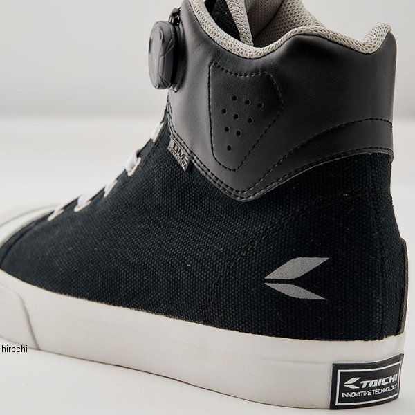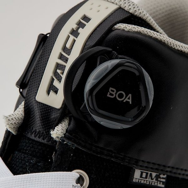 RSタイチ RSTaichi 011 DRYMASTER-FIT フープシューズサイズ:25.5cmカラー:ブラック【仕様説明】アウターにはTAICHIオリジナルの防水・透湿素材ドライマスターを採用し、全天候での使用に対応。表地にはカジュアルなキャンバス地のほか、テックホワイト、グレー/ブラック、オールブラックには耐久性に優れ、メンテナンスも容易な合成皮革Clarino®を、コーデュラカーキ、コーデュラブラックにはナイロンの7倍もの強度をもつ耐久性に優れた繊維CORDURA®を使用し、コーディネートの幅を広げました。ソールにはvibram社との共同開発により、ライディングに必要と考えられるグリップや排水性を考慮したハイグリップソールを採用。また、かかと内側には新たにヒールガードを採用し、シューズ本体へのダメージを軽減。タウンシューズの様なデザインながらもライディングに必要な機能を盛り込みました。左足のシフトペダルが当たる部分にはシフトガードを配置し、シューズ本体へのダメージや度重なるシフトチェンジによるつま先の痛みを軽減します。かかと外側には夜間の被視認性確保のためにリフレクターを装備するなど安全性にも配慮。インソールのかかと部分には厚みをもたせ、高さを出すことで、ライディング後の歩行時のストレスを軽減します。ダイヤルとガイドを操作することでグローブをはめた状態でも簡単でスピーディーな着脱を可能にするBOAシステムを採用。