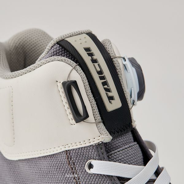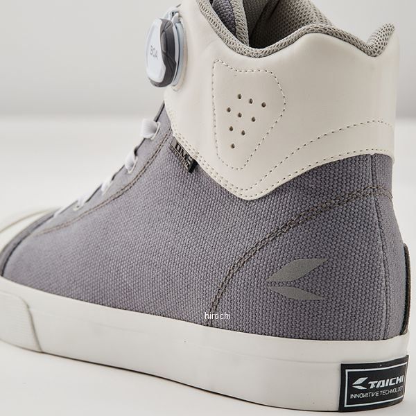 RSタイチ RSTaichi 011 DRYMASTER-FIT フープシューズサイズ:24.0cmカラー:グレー【仕様説明】アウターにはTAICHIオリジナルの防水・透湿素材ドライマスターを採用し、全天候での使用に対応。表地にはカジュアルなキャンバス地のほか、テックホワイト、グレー/ブラック、オールブラックには耐久性に優れ、メンテナンスも容易な合成皮革Clarino®を、コーデュラカーキ、コーデュラブラックにはナイロンの7倍もの強度をもつ耐久性に優れた繊維CORDURA®を使用し、コーディネートの幅を広げました。ソールにはvibram社との共同開発により、ライディングに必要と考えられるグリップや排水性を考慮したハイグリップソールを採用。また、かかと内側には新たにヒールガードを採用し、シューズ本体へのダメージを軽減。タウンシューズの様なデザインながらもライディングに必要な機能を盛り込みました。左足のシフトペダルが当たる部分にはシフトガードを配置し、シューズ本体へのダメージや度重なるシフトチェンジによるつま先の痛みを軽減します。かかと外側には夜間の被視認性確保のためにリフレクターを装備するなど安全性にも配慮。インソールのかかと部分には厚みをもたせ、高さを出すことで、ライディング後の歩行時のストレスを軽減します。ダイヤルとガイドを操作することでグローブをはめた状態でも簡単でスピーディーな着脱を可能にするBOAシステムを採用。