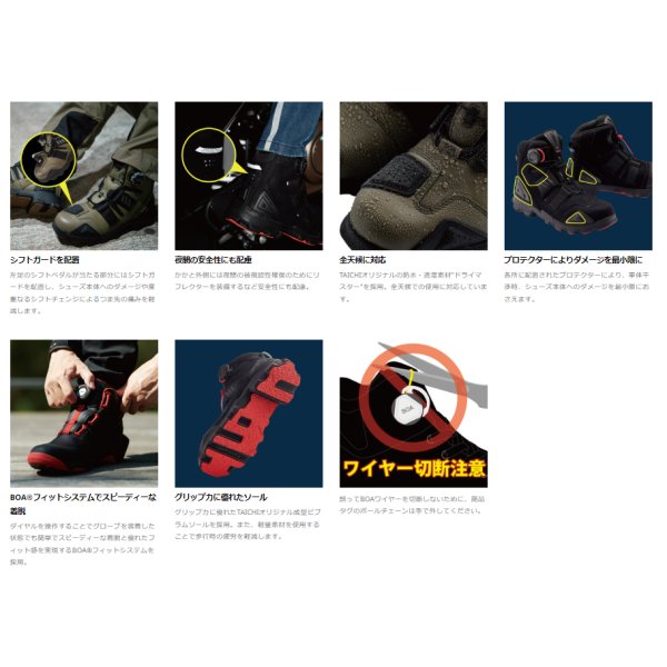 RSタイチ DRYMASTER コンバットシューズサイズ:23.0cmカラー:スエードブラックアドベンチャーコンセプトのデザインに基づき、悪路でのグリップに優れたTAICHIオリジナル成型ソールを採用したシューズ。アッパー内部にはTAICHIオリジナルの防水・透湿素材"ドライマスター"を使用し、悪天候にも快適な履き心地を実現します。アッパーのカラーに合わせてソールにも3タイプのカラーを設定。SUEDE BLACK/SUEDE BROWNには耐久性に優れ、メンテナンスも容易な人工皮革“Clarino(R)”を採用し、左足にはアクセサリーとして引手をつけております。また、着脱に便利なBOAダイヤルは大型のM4タイプを採用し、グローブを装着したままでもロックとリリースの操作を容易に行うことができます。・BOA(R)フィットシステムのMシリーズ 第4世代プラットフォームM4搭載・硬質成形プロテクター(ヒール)・オリジナルデザインビブラムソール