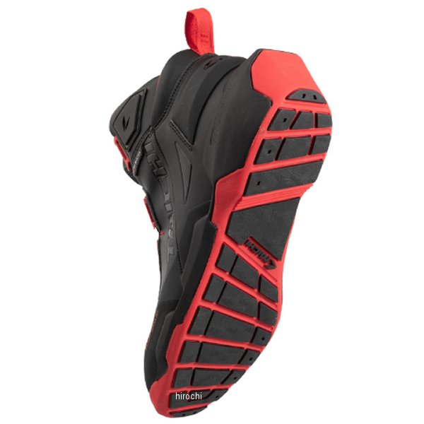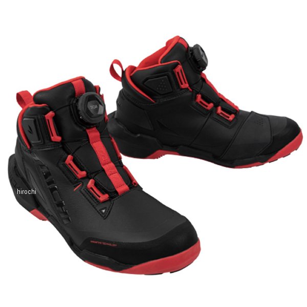 RSタイチ 013 DRYMASTER アローシューズサイズ:23.0cmカラー:ブラック/レッド存在感のあるソール形状が特徴的な、スポーティーにもカジュアルにも合わせやすい防水ライディングシューズ。アッパー内部にはTAICHIオリジナルの防水・透湿素材"ドライマスター"を採用し、全天候での使用に対応。軽量ソールで歩きやすく、ライディング時には、外側に張り出したソールやシューズ内外に配置されたプロテクターが足への衝撃を軽減します。着脱のしやすさと優れたフィット感を実現するBOA(R)フィットシステムを採用。・防水透湿・インナープロテクター(ヒール、くるぶし、つま先)・アウタープロテクター(ヒール、くるぶし)・オリジナルデザインソール