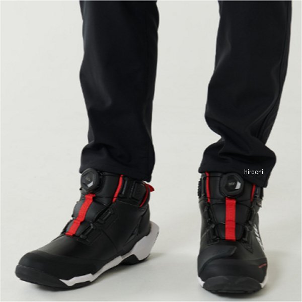 RSタイチ 013 DRYMASTER アローシューズサイズ:27.0cmカラー:ブラック/ホワイト存在感のあるソール形状が特徴的な、スポーティーにもカジュアルにも合わせやすい防水ライディングシューズ。アッパー内部にはTAICHIオリジナルの防水・透湿素材"ドライマスター"を採用し、全天候での使用に対応。軽量ソールで歩きやすく、ライディング時には、外側に張り出したソールやシューズ内外に配置されたプロテクターが足への衝撃を軽減します。着脱のしやすさと優れたフィット感を実現するBOA(R)フィットシステムを採用。・防水透湿・インナープロテクター(ヒール、くるぶし、つま先)・アウタープロテクター(ヒール、くるぶし)・オリジナルデザインソール