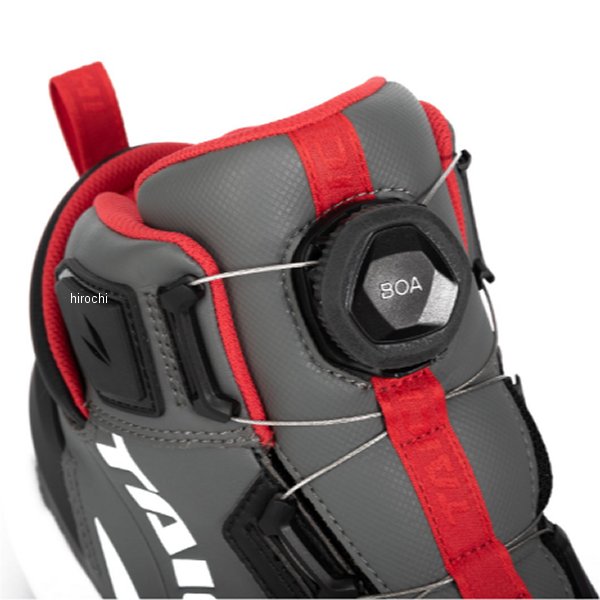 RSタイチ 013 DRYMASTER アローシューズサイズ:25.5cmカラー:ロケットグレー存在感のあるソール形状が特徴的な、スポーティーにもカジュアルにも合わせやすい防水ライディングシューズ。アッパー内部にはTAICHIオリジナルの防水・透湿素材"ドライマスター"を採用し、全天候での使用に対応。軽量ソールで歩きやすく、ライディング時には、外側に張り出したソールやシューズ内外に配置されたプロテクターが足への衝撃を軽減します。着脱のしやすさと優れたフィット感を実現するBOA(R)フィットシステムを採用。・防水透湿・インナープロテクター(ヒール、くるぶし、つま先)・アウタープロテクター(ヒール、くるぶし)・オリジナルデザインソール