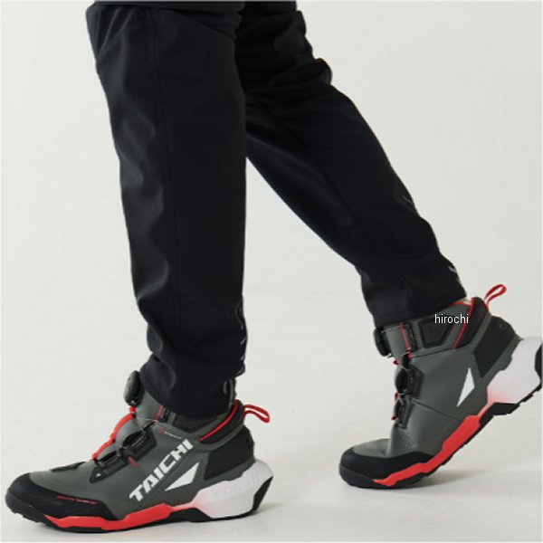 RSタイチ 013 DRYMASTER アローシューズサイズ:26.5cmカラー:ロケットグレー存在感のあるソール形状が特徴的な、スポーティーにもカジュアルにも合わせやすい防水ライディングシューズ。アッパー内部にはTAICHIオリジナルの防水・透湿素材"ドライマスター"を採用し、全天候での使用に対応。軽量ソールで歩きやすく、ライディング時には、外側に張り出したソールやシューズ内外に配置されたプロテクターが足への衝撃を軽減します。着脱のしやすさと優れたフィット感を実現するBOA(R)フィットシステムを採用。・防水透湿・インナープロテクター(ヒール、くるぶし、つま先)・アウタープロテクター(ヒール、くるぶし)・オリジナルデザインソール