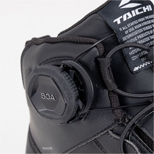 RSタイチ 014 DRYMASTER ブレイクシューズサイズ:26.0cmカラー:ブラック【素材】アッパー:人工皮革88%、ナイロン9%、ラバー3%アウトソール:EVA61%、ラバー36%、TPU3%【仕様説明】ストリートファッションに合うスニーカーのようなデザインながら、防水性能やプロテクターなどライディングに必要な機能を兼ね備えたライディングシューズ。アッパー内部にはTAICHIオリジナルの防水・透湿素材"ドライマスター"を採用し、全天候での使用に対応。着脱のしやすさと優れたフィット感を実現するBOA(R)フィットシステムを採用。くるぶしまで覆うハイカットタイプで、転倒時でもシューズが脱げにくい仕様です。シューズ内外に配置されたプロテクターが足への衝撃を軽減します。【機能】・防水透湿(DRYMASTER)・インナープロテクター(ヒール、くるぶし、つま先)・アウタープロテクター(アウトサイド)・オリジナルデザインソール