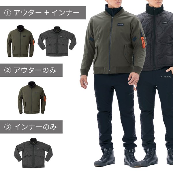 RSタイチ 秋冬モデル ソフトシェル フライト ジャケットサイズ:WMカラー:イーグルグレー標準装備プロテクター:肩、肘、背中【素材】アウター:ポリエステル100%インナー:ナイロン100%【仕様説明】定番のMA-1スタイルを防風性やストレッチ性をもつソフトシェル生地で仕上げた、ミリタリーテイストのライディングジャケットです。プロテクター内蔵のアウターと保温力をもつ中綿入りインナージャケットの二重構造で、気温やシーンに合わせてそれぞれ単体や組み合わせた着用が可能です。インナージャケットの首元リブには防風フィルムをインサートし、走行中はハイネックスタイルで風の侵入を抑え、降車後は襟を寝かせた着こなしで、それぞれ違ったスタイリングを楽しめます。胸部プロテクター(別売り)を装着するためのアタッチメントを装備。スナップボタンで胸部プロテクターの着脱が可能です。(CPS対応)標準装備の肩・肘・背中の各プロテクターはCEレベル2プロテクター(別売り)と入れ替えてアップグレード可能です。※左腕のタグはアクセサリータグにつき、ご不要の場合は取り外してください。