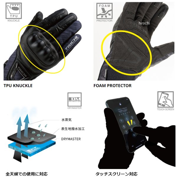 RSタイチ 秋冬モデル MOTO URBAN ウインターグローブ レディースサイズ:WMカラー:ブラック/ホワイトプロテクター:甲、平側【素材】表地:合成皮革47%、合成皮革27%、ポリエステル15%、牛革14%、ナイロン13%、ネオプレン 6%、PVC5%裏地:ポリエステル100%【仕様説明】豊富なカラーバリエーションを持ち、内蔵式のナックルプロテクションを採用したストリートモデル。防水/透湿素材「ドライマスター」をインサートし、人差し指と親指にはスマートフォンの操作を可能にするスマホタッチを採用しています。mcFITテクノロジーにより指先のフィーリングを高め、快適な操作感を実現しました。