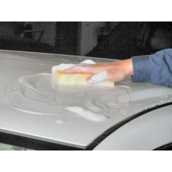 撥水道場 ボディースポンジ洗車用サイズ:150mm×90mm×25mm洗車に最適な持ちやすい大きさです。角があるので細かい部分も洗えます。