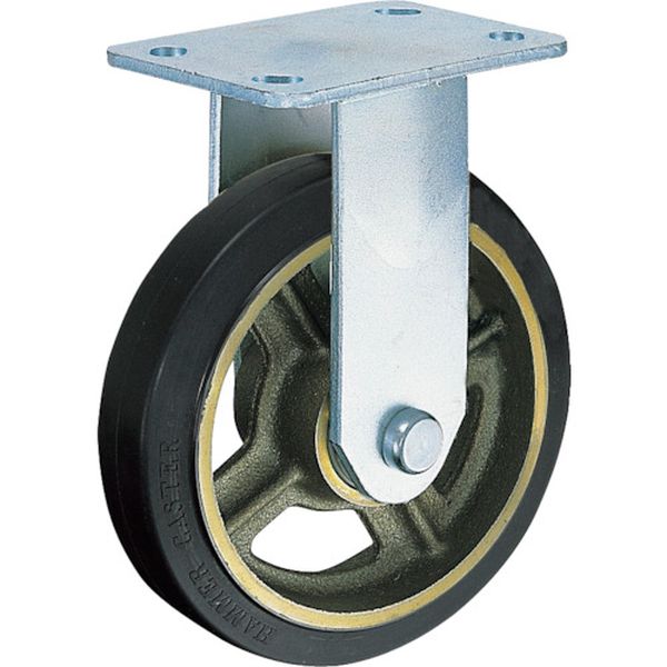 ・極厚の材料をウェルディング(溶接)加工し、耐久性、耐荷重性能を満たしたキャスターです。・大型機械や大型運搬車に。・車輪径D(mm):200・タイプ:固定式・許容荷重(daN):500・許容荷重(kgf):510・車輪幅(mm):50・取付高H(mm):246・取付座A(mm):150・取付座B(mm):105・取付ピッチX(mm):112~119・取付ピッチY(mm):63~56・取付穴径P(mm):13・プレート式・ラジアルボールベアリング入り・金具:スチール・金具表面処理:三価クロム化成処理・ホイール:イモノ・車輪:ゴム・生産国 日本・JANコード 4956237062983・質量 5217g・コード:814-3286 ・品目:500HPRCR200