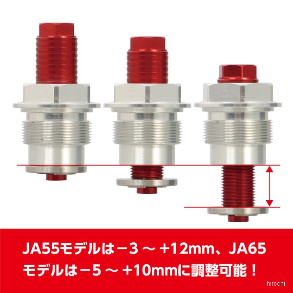 キタコ イニシャルアジャスターセットホンダ CT125ハンターカブ(JA55全車種、JA65全車種)カラー:スチール製シルバーアルマイト仕上げアジャスター:アルミ削り出しイニシャル調整範囲:-3~+12mm(JA55)、-5~+10mm(JA65)左右セットノーマルフォークスプリング、当社製フォークインナースプリング併用可※Oリング再使用※JA55とJA65では純正カラーの長さが異なる為、イニシャルの調節範囲も異なります。舗装道、砂利道、林道とあらゆる状況に応じた足周りのセッティングやリヤショック交換後のフロントフォークスプリングのセッティングが可能。フロントフォークスプリングのプリロード抜き/掛けの調節が可能になるアジャスターです。