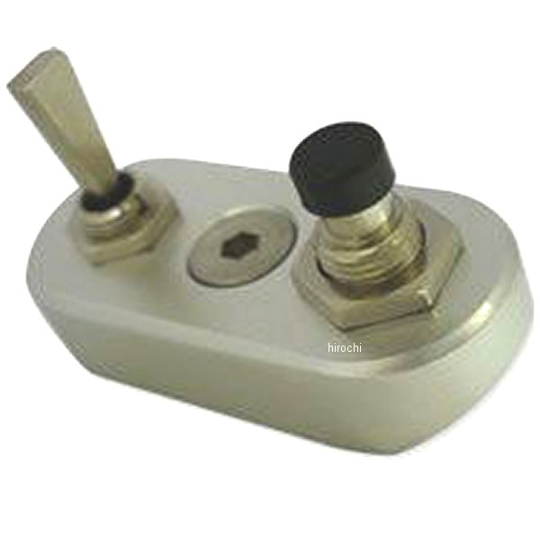 ガッツクローム スイッチボックスASSY2穴タイプキャンセラ対応適合パイプサイズ:1インチ(25.4mm)カラー:ポリッシュトグルスイッチ、ホーンやスターターに使用可能な非固定式のプッシュボタンが付属※キャンセラ対応はセルフキャンセルウインカー車輌に対応する非固定式のトグルスイッチが付属します。取付には配線中通し作業・配線のスイッチ本体へのハンダ付け・ハンドルへの取り付け穴加工・取り付けタップ加工などが必要になります。【特徴】ハンドル廻りのカスタムに欠かせない、アルミ削り出し・ガッツクローム・オリジナル・カスタムスイッチボックスです。ハンドル廻りをスッキリさせるにはもってこいのアイテムです。