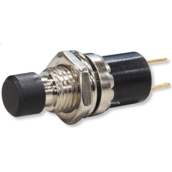 5100-6013 ガッツクローム ON-OFF プッシュスイッチ オルタネイトオルタネイトタイプのON-OFF プッシュスイッチです。1度押すとONが持続、再度押すとOFFになります。※スターター、ホーン等のスイッチには使用できません。サイズ 全長(端子含む)28mm、本体金属部分直径9.5mm、ネジ部分サイズM7-0.75 x 6.5mm、ボタン直径6mm当店品番9000-0045のスペーサーを併用すると1981年以前のウインカーボタンとして付け替えが可能です。メーカー:GUTS CHROME
