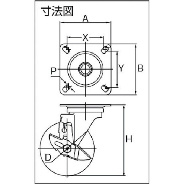 ・特殊樹脂車輪の使用によりゴム車輪と比べ始動・旋回始動はもちろん耐油性・耐薬品性にも優れています。・使用する際、マーキング(タイヤ痕)も付きません。・自動車工場等の部品搬送台車、無人搬送台車(AGV)に。・車輪径D(mm):150・タイプ:自在式(ストッパー付)・許容荷重(daN):250・許容荷重(kgf):255・車輪幅(mm):50・取付高H(mm):196・取付座A(mm):140・取付座B(mm):140・取付ピッチX(mm):100~112・取付ピッチY(mm):100~112・取付穴径P(mm):13・自在式(ストッパー付)・プレート式・金具:スチール・金具表面処理:三価クロム化成処理・車輪:特殊樹脂車輪・生産国 日本・JANコード 4956237444789・質量 3102g・コード:392-9752 ・品目:513YSHBN150