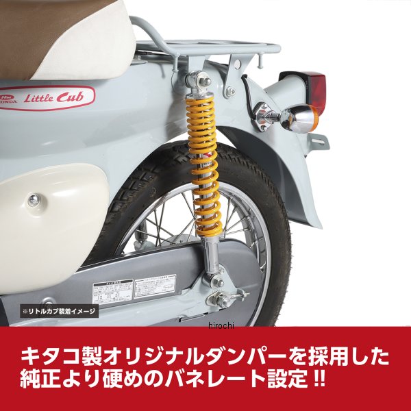 キタコ KITACO リアショックセット09年-11年 ホンダ スーパーカブ11092年-08年 ホンダ スーパーカブ5086年-99年 ホンダ スーパーカブ7086年-08年 ホンダ スーパーカブ9086年-99年 ホンダ スーパーカブ90 カスタム97年-16年 ホンダ リトルカブ2本セットカラー:メッキ/イエローボディ:メッキ自由長:330mmオイルダンパー採用プリロード調整:5段階【仕様説明】キタコオリジナルのオイルダンパーを採用したリアショックアブソーバーです。メッキボディーに不等巻きスプリングを採用。【参考ノーマルリヤショック自由長(おおよその数値)】リトルカブ(C50/AA01):330mmスーパーカブ50-90(C50/AA01/C90/HA02):325mmスーパーカブ110(JA07):325mm※スーパーカブの古いモデルはショックの自由長がノーマルと異なったり、装着できない場合があります。必ずノーマルショックを実測の上、ご購入ください。※サイズはおおよその数値です。