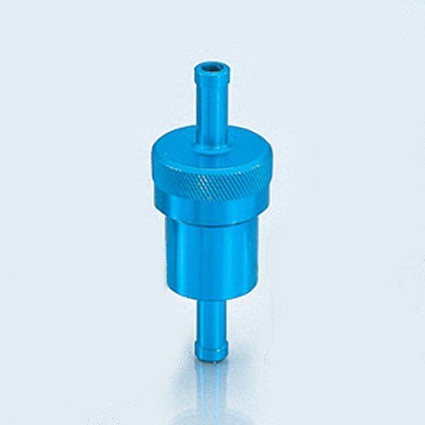 フュエルフィルター ホース内径φ6対応 (ブルー)です。汎用キャブレターのオーバーフロー等のトラブルの原因は、ほとんどがガソリンタンク内のゴミ等の混入です。フュエルホースにフィルターを取り付けておけば防止出来ます。