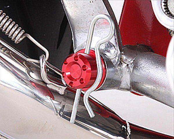 ピボットキャップです。74年-97年 ホンダ モンキー99年-17年 ホンダ モンキー91年-01年 ホンダ モンキーBAJAレッドアルミ削り出しアルマイト仕上げ1個売りβピン付属※DAX・シャリー不可※ブレーキピボット部にステーを固定するダウンマフラーを装着している車両には装着は出来ません。※ブレーキピボット部近くをエキパイが通るタイプのダウンマフラーはβピンが干渉する恐れがあります。
