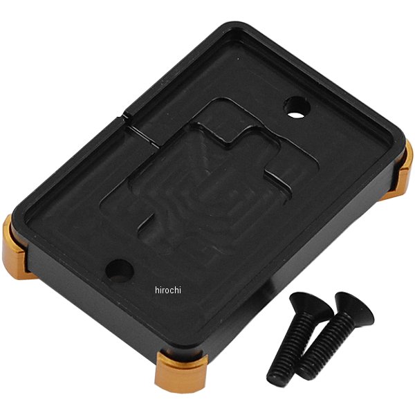 マスターシリンダーキャップ(タイプ-1)です。14年-17年 ヤマハ マジェスティSカラー:ブラック/ゴールドアルミ削り出し製アルマイト仕上げ2ピースタイプ1ケ販売TYPE-1 はM 6 皿キャップボルトを使用することで市販ホルダー等が装着できます。マスターシリンダーキャップ/ステー装着について本製品はマスターシリンダー上に計器類を設置するなど、純正品とサイズ(厚み)が異なる為、車種によってはハンドル操作時にスクリーンなど他のパーツに接触し装着できない場合がございます。特にタイプ3はマスターシリンダー上に計器類等を装着して使用するため、ハンドル操作の妨げとなる荷重がかかる物は装着しないで下さい、製品の破損や走行中思わぬ事故を起こす原因となりますのでご注意下さい。(耐荷重量:250g)