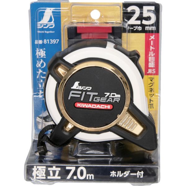 ・立体的な形状で手のひらにフィットします。・立ちの良いテープを採用しました。(従来品比21%アップ)・テープ長さ(m):7・テープ幅(mm):25・水平保持(m):2.6・目盛仕様:両面目盛・爪仕様:マグネット爪・JIS1級 両面目盛 ナイロンコート・マグネット爪・テープ:炭素工具鋼(SK)・生産国 中国・JANコード 4960910813977・質量 375g・コード:536-8386 ・品目:81397