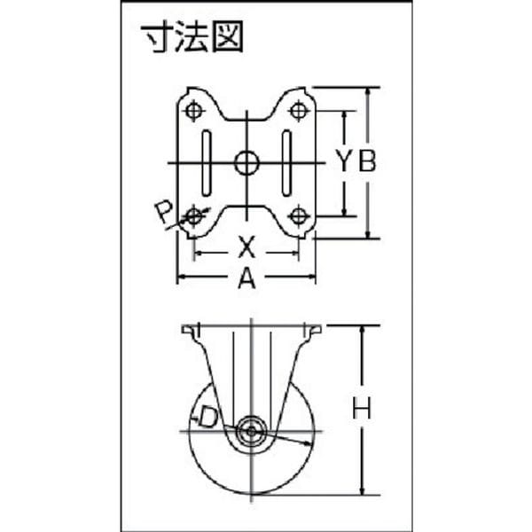 ・コンパクトな設計で取付高さが低く、従来のキャスターに比べ小型で、重荷重に充分耐えられます。・車輪にはアルミホイールを採用し、軽量化を実現しています。・低床・重荷重が必要な機器に。・車輪径D(mm):50・タイプ:固定式・許容荷重(daN):300・許容荷重(kgf):306・車輪幅(mm):40・取付高H(mm):79・取付座A(mm):82・取付座B(mm):89.5・取付ピッチX(mm):63・取付ピッチY(mm):63・取付穴径P(mm):8.8・許容荷重(N):3000・プレート式・低床式・固定式・金具:スチール・金具表面処理:黒色三価クロム化成処理・車輪:アルミホイール、熱硬化性ウレタン・生産国 日本・JANコード 4956237433615・質量 494g・コード:309-2852 ・品目:540SRBAU50