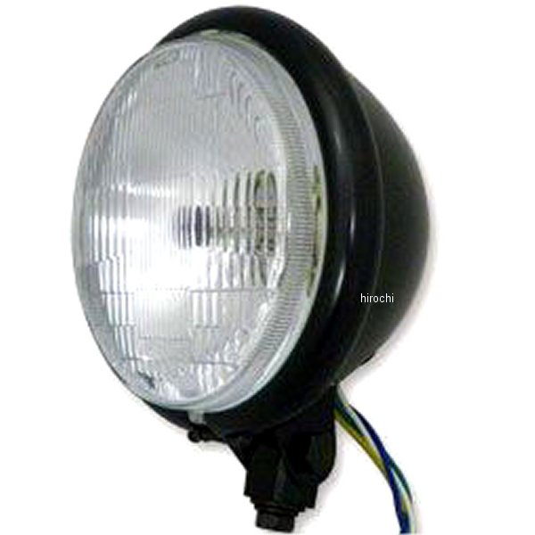 ガッツクローム 5.75インチ ベーツヘッドライト60/55W H4バルブボトムマウントレンズ:フラットショベルFX系やEVOダイナ、スポーツスターと同サイズEVO純正のようなフラットレンズを採用カラー:ブラックライト上部にハイビームインジケーター(青色)が付いています。