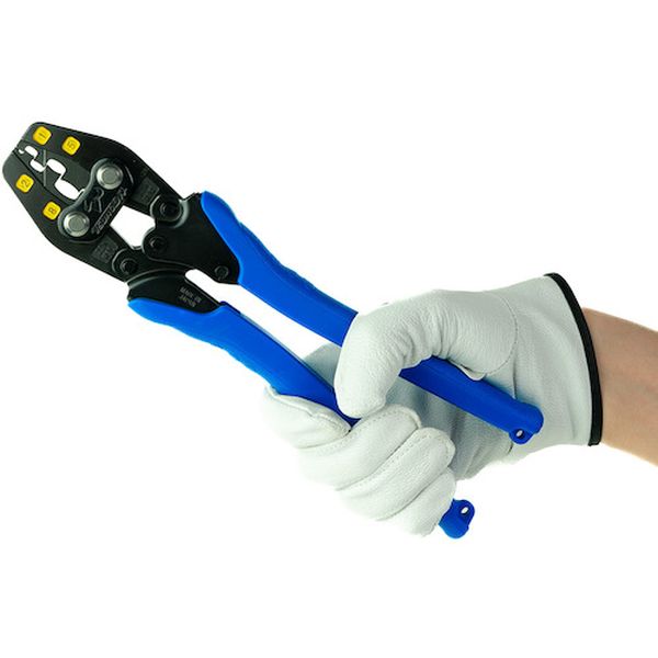 ・より軽い力で圧着が可能となるよう、最も倍力率が高くなる位置関係を構造力学計算した二重テコのトグル機構を採用。・仮押さえをしても端子のつぶれが最小限で、電線挿入がスムーズにでき圧着前に位置を確認することができる。・圧着マークはしっかりと浮かび上がり、クッキリと見える。・グリップは太く、圧着時にしっかりと力を入れることができ、手が痛くならないエラストマー樹脂。・絶縁被覆付閉端接続子用の圧着作業に・全長(mm):260・圧着端子:CE1、2、5、8・圧着端子([[MM2]])絶縁被覆付閉端接続子用:CE1、2、5、8・圧着工具 絶縁被覆付閉端接続子用・本体:機械構造用合金鋼・グリップ:エラストマー樹脂・焼入れ:頭部42~46HRC ハンドル部46~49HRC・非絶縁工具です。・電源を切ってお使い下さい。・使用用途以外には使用しないで下さい。・その他商品台紙注意事項参照。・生産国 日本・JANコード 4952269115178・質量 445g・コード:572-3040 ・品目:TPH8