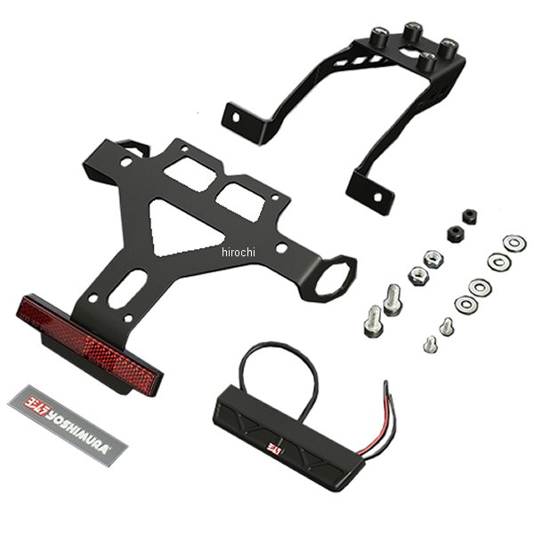 ヨシムラ フェンダーレスキット21年-22年 カワサキ Ninja ZX-25Rリフレクター、ステッカー付属上向き40°保安基準適合(新基準に適合)【仕様説明】マシンにマッチしたデザイン性と、剛性と強度にも配慮したフェンダーレスキットです。3連スリットに肉抜きされたステンレス製ブラケットは、剛性を欠くことなく小型化を実現し、高耐久性、軽量化に貢献しています。取付方法にも配慮したブラケット構造。純正ウインカー対応。※ナンバー灯の配線が必要です。