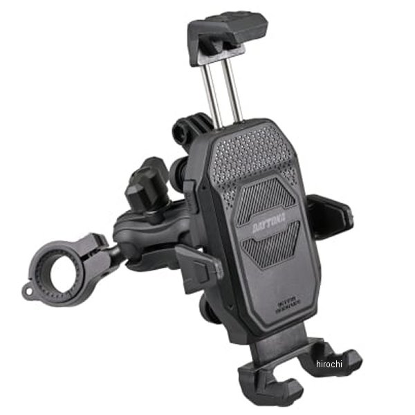 デイトナ FSH-1 スマートフォンホルダー固定最大サイズ:約165×81×13(mm)サイズ:W85~100×D75×H150~200(mm)素材:ホルダー本体:樹脂 / 金属、クランプベース:樹脂【構成部品】スマートフォンホルダー本体 ×1丸スペーサー ×2板スペーサー ×1標準アーム ×1六角ボルト ×1六角レンチ(4mm)×1ボルト目隠しシール ×1プラスボルト ×1デイトナ スマホホルダーシリーズにエントリーモデルが登場。ボールジョイント機構により、自由度の高い位置調整が可能なスマートフォンホルダーです。別売品(OPTION)と組み合わせることで様々な機材を幅広い箇所へ取り付けが可能。・シボの質感に高級感のある樹脂ボディ・Wエアマウントでスマホを振動から守るWエアマウントとは … 一般的なマウントとホルダー間の振動吸収に加え、固定部のゴムが中空となっているマウント。振動をさらに吸収します。・安心感のある5つの爪でスマホをしっかりキャッチ※iPhone16 Pro MAX/Plusは縦横厚ともにサイズオーバーのため装着不可。※運転者が走行中にスマートフォンやカーナビ、携帯電話などの画面を注視したり、電話機能を使用したりすることは法令で禁止されており大変危険です。また前方不注意による重大な事故の原因にもなりますので、法令を尊守し安全運転を心掛けてください。※本商品の誤った取り付けや指示以外の分解、改造、加工などをしないでください。本来の性能を損なうだけでなく脱落や破損などの原因となります。※バーのストレート部に15mm以上のスペースが無い場合は取り付けは不可。※設計外径(φ22.2/φ25.4/φ28.6)以外のバー、異形バーへの取り付けは不可。※設計重量制限(250gまで)を超える機種の装着は不可。※重量制限上カメラをマウントする場合、スマートフォンの取り付けは不可。※商品および装着品が車両部位や他部品に接触する場合は取り付けしないでください。※各ボルトへのねじ緩み止め剤塗布など、商品の素材を侵す溶剤・ケミカル類の使用は不可。※商品開梱時や取り付けや取り扱い時にパッケージや商品の端面や突起、バリなどで予期せぬケガや事故が発生する場合があります。取り扱いの際は保護手袋を着用するなど十分に注意してください。※商品可動部の調整、部品の組み替え、車体への取り付け、機種装着は全て使用者本人のリスクにおいて行なってください。※装着機種を外力や雨水、熱、盗難などから保護する機能はありません。装着機種の傷つきや防水、防塵、防熱、盗難抑止などに十分注意してご使用ください。※電源ボタン、カメラ、スピーカー、イヤホンジャックなどの設置位置は機種により異なるため、機能に支障がでる状態での取り付けとならざるを得ない場合があります。事前に十分ご確認ください。※本商品は舗装路の一般的な走行状態を基準に設計されております。路面の段差や未舗装路などを走行した場合の衝撃には十分な性能が発揮できない場合があります。※本商品は振動を軽減するための機能がありますが、ご使用状況やご使用環境によって異なるため、振動による破損や故障を完全に防ぐものではありません。車両への装着や装着機種などについては使用者本人の責任においてご使用ください。※ご使用時にスマートフォンやホルダーの一部が、他の場所に触れないようにしてください。振動吸収効果が半減します。