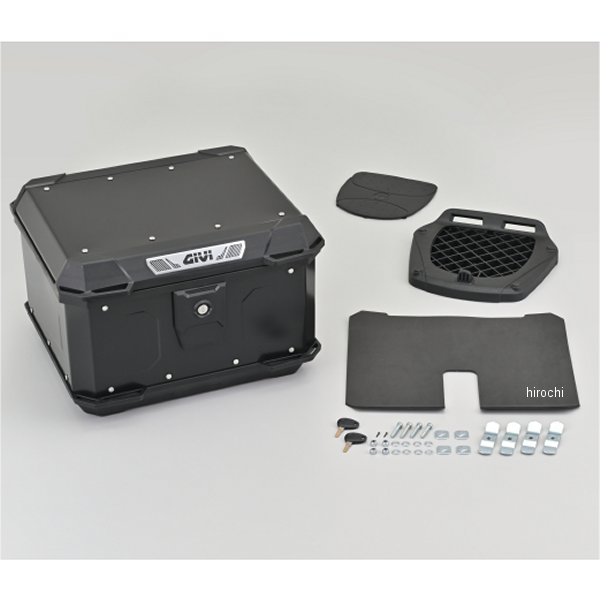 ジビ GIVI トップケース MTN39BD容量:39L重量:5kgサイズ:奥行390×幅449×高さ292(mm)最大積載重量:3kgWIDE汎用ベースが付属手軽な価格のGIVI ベーシックモデル。付属の汎用ベースを使用し純正や市販のキャリアが取り付けできるほか、GIVI 車種専用フィッティングと組み合わせて取り付けることも可能です。フラットデザインのアルミケース。蓋を閉めるだけでロックが可能。ベースからの取り外しは、ボックスの中のみとなるので防犯性が高くなっています。フラットなケース上面と4箇所のベルトループでシートバッグなどを装着可能です。※接点付きベースへの装着はできません。※キャリア本体の積載制限以上は積載しないでください。※防水性を考慮した設計してますが、完全防水ではありません。※素材独自の風合いを出すために、アルミ部分に表面処理を行なっておりません。手あかや水あかなどの汚れが定着しやすい傾向にあります。排気量300cc以下の車両推奨。