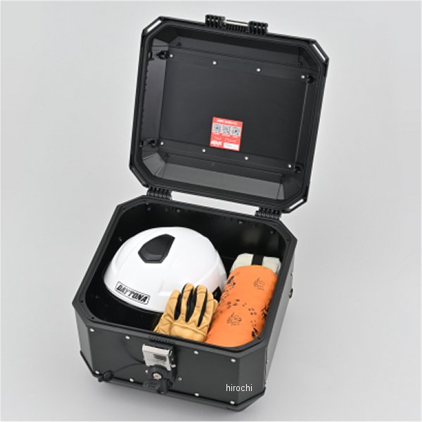 ジビ GIVI トップケース MTB45BDカラー:未塗装ブラック容量:45L重量:6kgサイズ:奥行421×幅464×高さ331(mm)最大積載重量:10kg※デイトナでは操縦性を考慮し3kg以下を推奨。手軽な価格のGIVI ベーシックモデル。付属の汎用ベースを使用し純正や市販のキャリアが取り付けできるほか、GIVI 車種専用フィッティングと組み合わせて取り付けることも可能です。フラットデザインのアルミケース。GIVI独自のWIRELEASEシステムを採用し、ケース外部のノブを回すことで簡単にケースが脱着が可能です。フラットなケース上面と4箇所のベルトループでシートバッグなどを装着可能。後部にハンドルが付き、バイクから取り外し後も持ち運びやすくなっています。※未塗装品は表面処理をしていないため、表面はざらざらしています。※フィッティングの積載制限以上は積載しないでください。