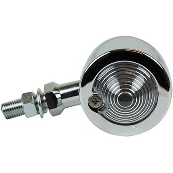 GOODS グッズ スモールバレットウインカー汎用カラー:ボディ:クローム レンズ:クリア材質:ボディ:スチール レンズ:樹脂サイズ:本体直径:50.5mm レンズ径:35mm 前後長さ:約73mm 取り付けボルトサイズ:M10-1.25内容物:本体×1【仕様説明】小ぶりなバレットウインカー。バルブ:BA15S 12V23W。スモールバレットウインカーアンバーレンズとクリアレンズ単品のセット商品。