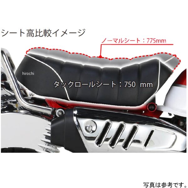 キタコ タックロールシート19年-21年 ホンダ モンキー125カラー:レッドパイピング/ブラック【素材】シート表皮:合成皮革シートベース:PP(オリジナル)【仕様説明】スタイルを崩さない王道タックロールスタイルのタックロールシートです。ノーマルに比べ沈み込みが少なく、シート高を低くしたフラットタイプシートでドレスアップにもおすすめです。キタコ製のグラブバー、サイドグリップ、リアキャリアーと併用可能。シートブラケット、シートセッティングラバー、カラー、ボルト等再使用。