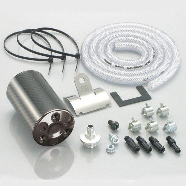 ジュラルミン削り出しタンクにカーボンを纏ったレーシーなオイルキャッチタンク。