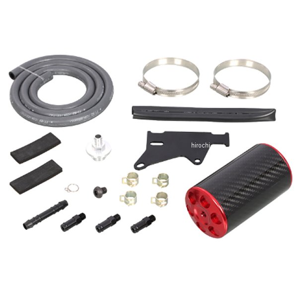 キタコ カーボンオイルキャッチタンクキット21年-22年 ホンダ グロム21年-24年 ホンダ モンキー125カラー:レッドキャッチタンクボトル:アルミ製カーボン巻ボトルキャップ:アルミ削り出し/アルマイト仕上げサイズ:外径×ボトル長:Φ63×115mm容量:220cc【仕様説明】ピストン運動のさまたげとなるケース内部の圧力をエンジン各所のブリーザーパイプから取り出し、パワーロスとクランクケース内の温度上昇を低減します。同時に吹き出るオイルをキャッチタンクが確実に受け止め、圧力のみを大気放出。4ストロークエンジンの定番のチューニングパーツです。