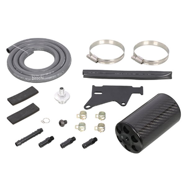 キタコ カーボンオイルキャッチタンクキット21年-22年 ホンダ グロム21年-24年 ホンダ モンキー125カラー:ブラックキャッチタンクボトル:アルミ製カーボン巻ボトルキャップ:アルミ削り出し/アルマイト仕上げサイズ:外径×ボトル長:Φ63×115mm容量:220cc【仕様説明】ピストン運動のさまたげとなるケース内部の圧力をエンジン各所のブリーザーパイプから取り出し、パワーロスとクランクケース内の温度上昇を低減します。同時に吹き出るオイルをキャッチタンクが確実に受け止め、圧力のみを大気放出。4ストロークエンジンの定番のチューニングパーツです。