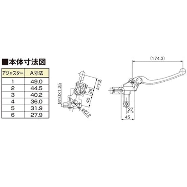 デイトナ ブレーキ マスターシリンダー キット 横型/タンク別体式 5/8インチ86年-89年 カワサキ GPX750R95年-99年 カワサキ GPZ110085年-86年 カワサキ GPz600R84年-86年 カワサキ GPz750R84年-02年 カワサキ GPZ900R89年-90年 カワサキ KR-1R89年-90年 カワサキ KR-1S00年-03年 カワサキ Ninja ZX-12R96年-03年 カワサキ Ninja ZX-7R96年-97年 カワサキ Ninja ZX-7RR94年-01年 カワサキ Ninja ZX-9R79年-81年 カワサキ Z750FX81年-82年 カワサキ Z750FX399年-01年 カワサキ ZR-702年-05年 カワサキ ZR-7S97年-00年 カワサキ ZRX110097年-00年 カワサキ ZRX1100-201年-08年 カワサキ ZRX1200R01年-04年 カワサキ ZRX1200S94年-08年 カワサキ ZRX40095年-08年 カワサキ ZRX400-288年-90年 カワサキ ZX-1089年-90年 カワサキ ZXR40089年-95年 カワサキ ZXR75091年 カワサキ ZXR750R94年 カワサキ ZXR750R90年-01年 カワサキ ZZR110002年-05年 カワサキ ZZR120090年-07年 カワサキ ZZR40085年-89年 カワサキ エリミネーター75089年-95年 カワサキ ゼファー92年-07年 カワサキ ゼファー110096年-00年 カワサキ ゼファー1100RS02年 カワサキ ゼファー1100RS91年-95年 カワサキ ゼファー75099年 カワサキ ゼファー75001年-07年 カワサキ ゼファー75096年-99年 カワサキ ゼファー750RS01年-02年 カワサキ ゼファー750RS97年-09年 カワサキ ゼファーχ95年-99年 スズキ GSF120096年-99年 スズキ GSF1200S06年-08年 スズキ GSR40094年-99年 スズキ GSX1100カタナ99年-18年 スズキ GSX1300Rハヤブサ01年-08年 スズキ GSX140092年-99年 スズキ GSX400Sカタナ99年 スズキ GSX400インパルス05年-08年 スズキ GSX400インパルス82年-83年 スズキ GSX400インパルスFS82年-86年 スズキ GSX750Sカタナ93年-98年 スズキ GSX-R1100W89年 スズキ GSX-R250R90年-99年 スズキ GSX-R400R85年-87年 スズキ GSX-R75096年-99年 スズキ GSX-R75094年-95年 スズキ RF900R83年-84年 スズキ RG250ガンマ03年-05年 スズキ SV100000年-07年 スズキ SV400S99年-00年 スズキ SV65003年-07年 スズキ SV65099年-00年 スズキ SV650S03年-09年 スズキ SV650S98年-00年 スズキ TL1000R97年-02年 スズキ イナズマ98年-99年 スズキ イナズマ120089年-90年 スズキ バンディット93年-99年 スズキ バンディット00年-07年 スズキ バンディット120000年-07年 スズキ バンディット1200S91年-97年 スズキ バンディットV97年-00年 スズキ バンディットVZ01年-05年 トライアンフ DAYTONA955i02年-14年 トライアンフ SpeedTriple98年-02年 ホンダ CB1300スーパーフォア97年-98年 ホンダ CB400スーパーフォア バージョンS08年-13年 ホンダ CB400スーパーフォア ハイパーVTEC Revo14年-17年 ホンダ CB400スーパーフォア ハイパーVTEC Revo ABS99年-01年 ホンダ CB400スーパーフォア ハイパーVTEC SPEC102年-03年 ホンダ CB400スーパーフォア ハイパーVTEC SPEC204年-07年 ホンダ CB400スーパーフォア ハイパーVTEC SPEC382年-85年 ホンダ CB750F82年-85年 ホンダ CB750Fインテグラ11年-12年 ホンダ CBR600F99年-00年 ホンダ CBR600F401年-02年 ホンダ CBR600F4i87年-91年 ホンダ CBR75092年-99年 ホンダ CBR900RRファイアーブレード83年-86年 ホンダ CBX550Fインテグラ84年-87年 ホンダ CBX750F85年-87年 ホンダ CBX750Fボルドール84年-87年 ホンダ NS250F84年-87年 ホンダ NS250R94年-99年 ホンダ RVF75084年-87年 ホンダ VF400Fインテグラ83年-85年 ホンダ VF750F86年-89年 ホンダ VFR750F87年-88年 ホンダ VFR750R98年-02年 ホンダ ホーネット60091年-95年 ヤマハ FJ120085年 ヤマハ FZ250 フェーザー97年-00年 ヤマハ FZ40085年-87年 ヤマハ FZ400N85年-87年 ヤマハ FZ75087年-95年 ヤマハ FZR100089年-91年 ヤマハ FZR250R93年-94年 ヤマハ FZR250R86年-87年 ヤマハ FZR40087年-89年 ヤマハ FZR400R90年-94年 ヤマハ FZR400RR87年-88年 ヤマハ FZR75089年-92年 ヤマハ FZR750R86年-00年 ヤマハ FZX75090年-99年 ヤマハ R1-Z83年-89年 ヤマハ RZ250R84年-86年 ヤマハ RZ250RR81年-82年 ヤマハ RZ35083年-85年 ヤマハ RZ350R84年-87年 ヤマハ RZ350RR84年-87年 ヤマハ RZV500R85年-86年 ヤマハ SRX40085年-86年 ヤマハ SRX60092年-94年 ヤマハ TDM85098年-00年 ヤマハ TDM85095年-99年 ヤマハ TRX85089年-90年 ヤマハ TZR25091年-94年 ヤマハ TZR250R90年-99年 ヤマハ V-MAX 120083年-86年 ヤマハ XJ40094年-97年 ヤマハ XJR120096年-97年 ヤマハ XJR1200R98年-99年 ヤマハ XJR130093年 ヤマハ XJR40095年-96年 ヤマハ XJR40095年-00年 ヤマハ XJR400R94年 ヤマハ XJR400S93年-96年 ヤマハ YZF750SP05年-08年 ヤマハ グランドマジェスティ400φ22.2ハンドル用。レバーアジャスト6段階調整可能。ブレーキスイッチ(平端子2極タイプ)、アルミタンクステー×1、ミラーホルダー(M10×P1.25正ネジ)×1付属。リザーバータンクホース長=70mm。バンジョーボルト(M10×P1.25)は別売り。ブレーキホースの取出方向・角度がノーマルとは異なります。ガスケットは必ず新品に交換してください。Wバンジョーで3枚、Sバンジョーで2枚は必要です。※ご使用のキャリパーとの組み合わせによっては必要ブレーキ液圧が発生する前にレバーがグリップに当たり使用できないレバーアジャスター位置があります。レバーアジャスターの調整を行い、ブレーキが十分に効き、なおかつレバーがグリップに接触しないレバーアジャスター位置でご使用ください。※シリコン系ブレーキフルードは使用しないでください。