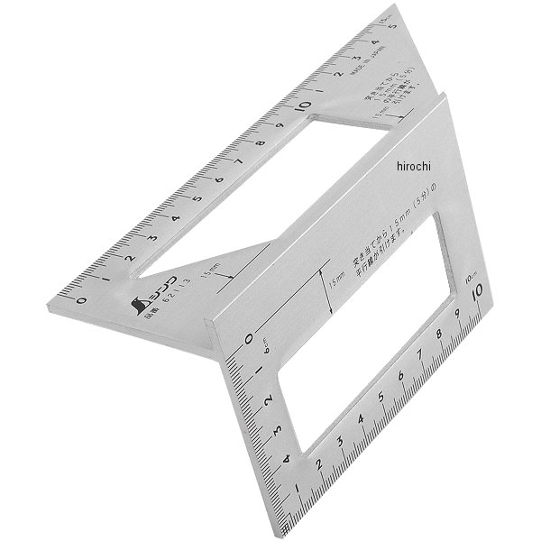 ・中窓で回り縁などに必要な15mm幅の線が引けます。・45°・90°を同時に確認でき、ケガけます。・巾広台で安定感抜群です。・45°・90°の角度確認。・全長(mm):170・幅(mm):63・厚さ(mm):73・90°角度精度±0.2mm以下100mm・45°角度精度±0.2mm以下100mm・長さの許容差±0.2mm・アルミ・生産国 日本・JANコード 4960910621138・質量 90g・コード:421-9554 ・品目:62113